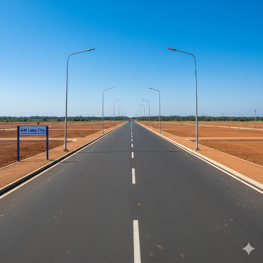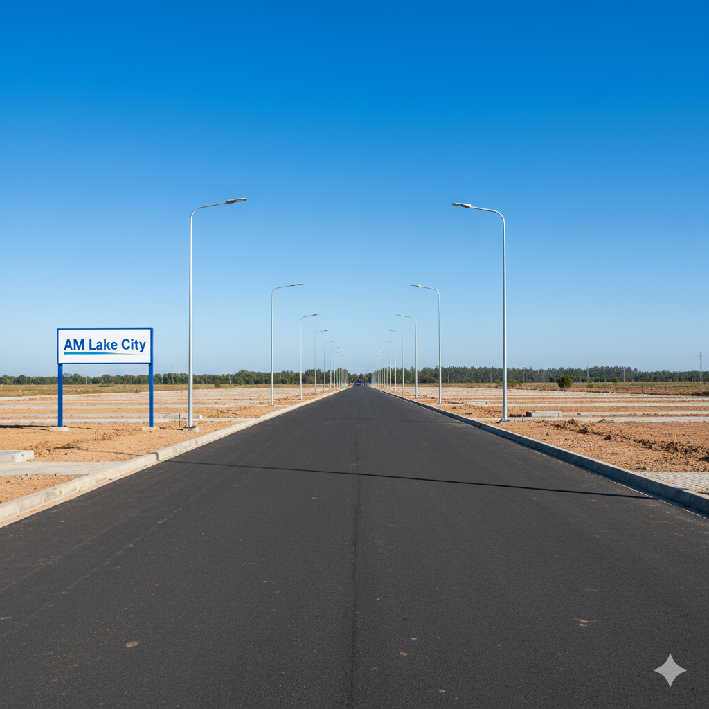 Every year, the infrastructure gets better, and more and more people want to buy homes there. A Township Where You Can Live, Grow, and Be Safe The layout of AM Lake City is well thought out, which makes it easy and pleasant to live there. The township has wide roads, room for utilities, a gated entrance, and well-planned plots.